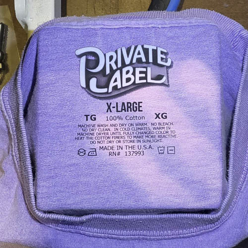 If Private Label is required, the schedule will be updated for each 10,000 unit delivery and 10,000 unit shipment according to our labeling speed with other projects. Please be aware that Private Label will slow down dyeing between 10,000 unit batches because of space limitations. It is possilbe to split orders into 5,000 units so that 5,000 dyed and labeled t-shirts can be shipped and then 5,000 can be delivered to start dyeing while the second 5,000 is being labeled. We will co-ordinate with your company to maximize scheduling.